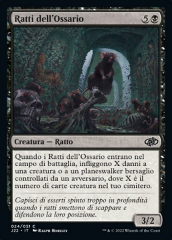 Rules When Ossuary Rats enters the battlefield, it deals X damage to target creature or planeswalker an opponent controls, where X is the number of creature cards in your graveyard.