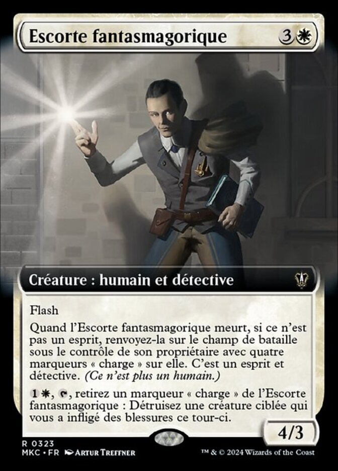 When Otherworldly Escort dies, if it's not a Spirit, return it to the battlefield under its owner's control with four charge counters on it. It's a Spirit Detective. (It's no longer a Human.)