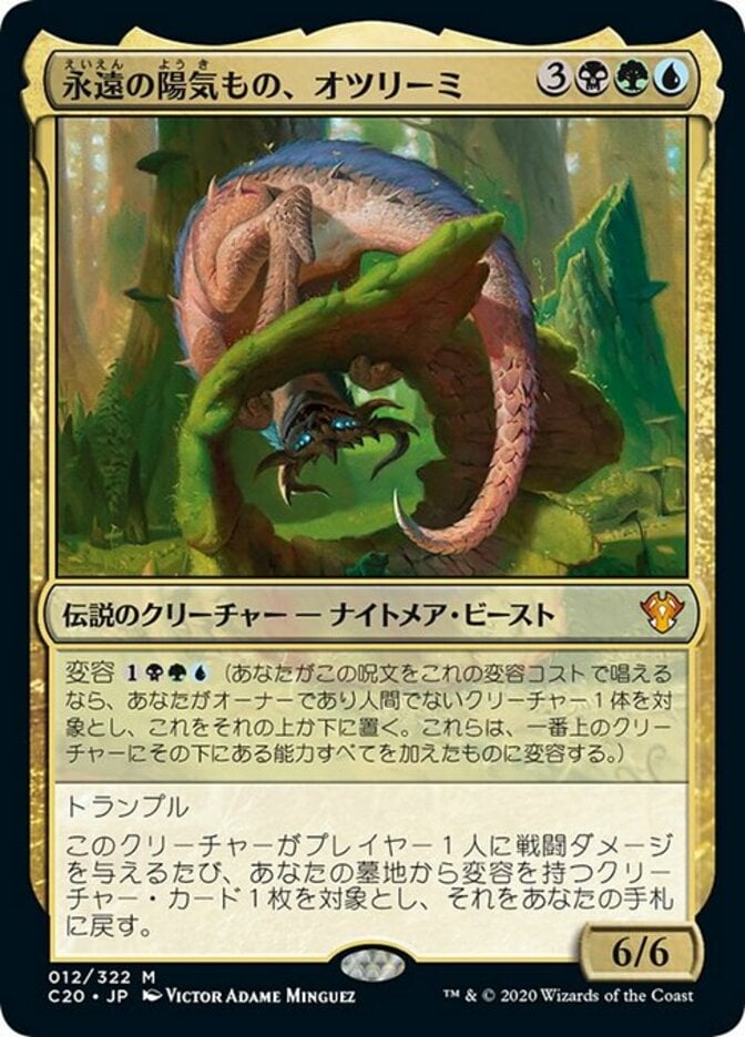 | Rules | Mutate (If you cast this spell for its mutate cost, put it over or under target non-Human creature you own. They mutate into the creature on top plus all abilities from under it.) Trample Whenever this creature deals combat damage to a player, return target creature card with mutate from your graveyard to your hand. |