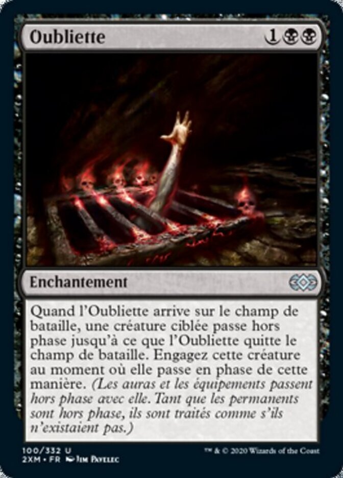 | Rules | When Oubliette enters the battlefield, target creature phases out until Oubliette leaves the battlefield. Tap that creature as it phases in this way. (Auras and Equipment phase out with it. While permanents are phased out, they're treated as though they don't exist.) |