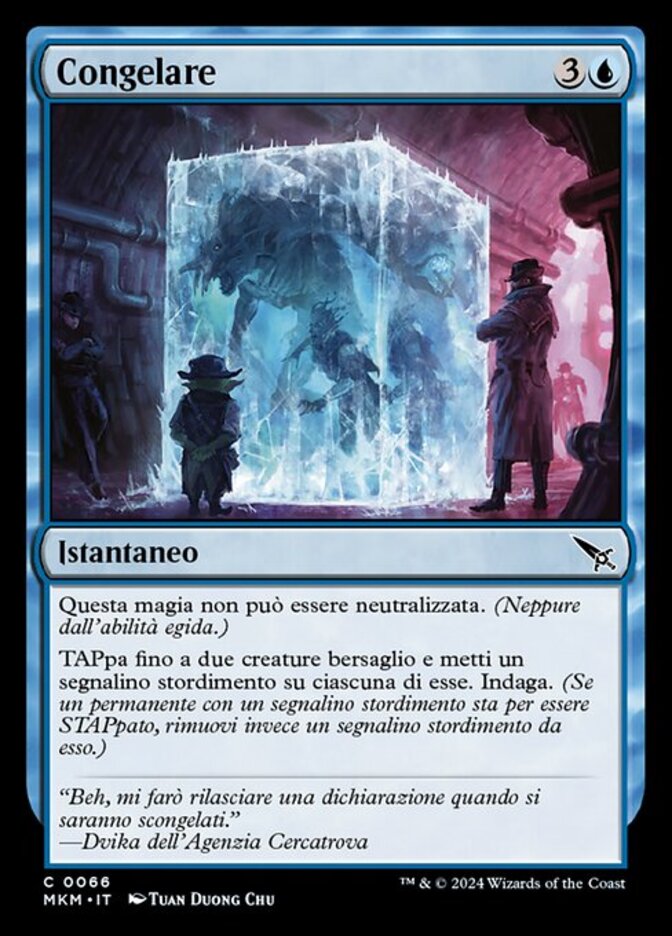 | Rules | This spell can't be countered. (This includes by the ward ability.) Tap up to two target creatures and put a stun counter on each of them. Investigate. (If a permanent with a stun counter would become untapped, remove one from it instead.) |