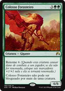 | Rules | Renown 6 (When this creature deals combat damage to a player, if it isn't renowned, put six +1/+1 counters on it and it becomes renowned.) Outland Colossus can't be blocked by more than one creature. |