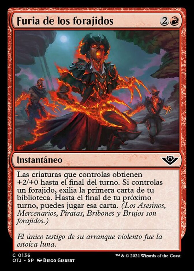 | Rules | Creatures you control get +2/+0 until end of turn. If you control an outlaw, exile the top card of your library. Until the end of your next turn, you may play that card. (Assassins, Mercenaries, Pirates, Rogues, and Warlocks are outlaws.) |