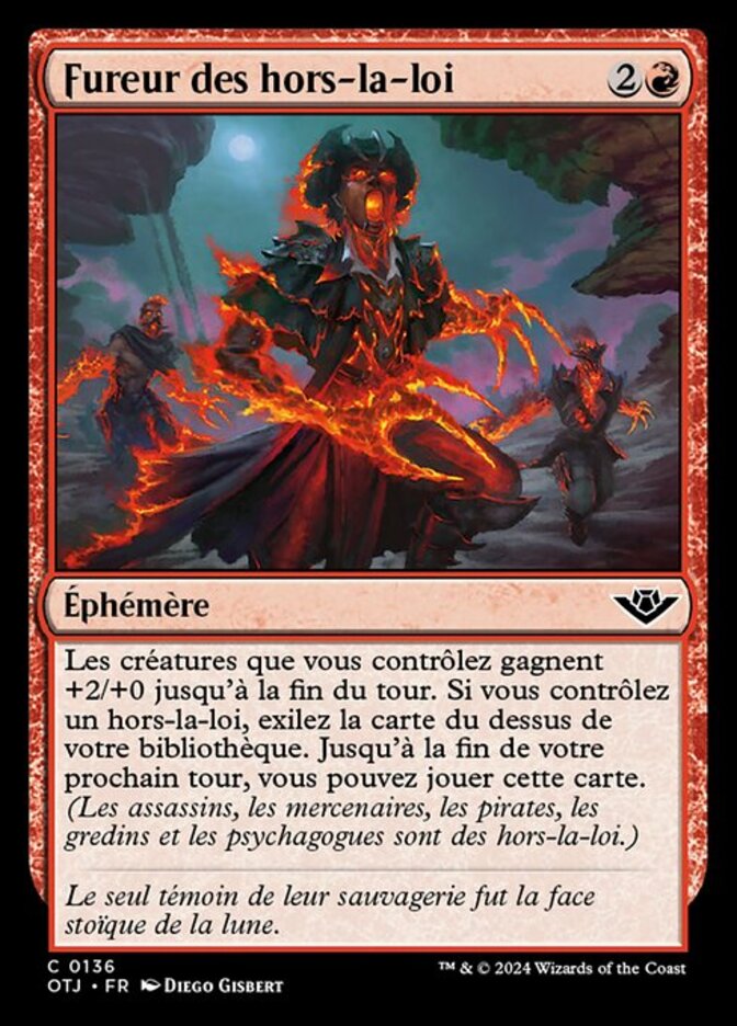 | Rules | Creatures you control get +2/+0 until end of turn. If you control an outlaw, exile the top card of your library. Until the end of your next turn, you may play that card. (Assassins, Mercenaries, Pirates, Rogues, and Warlocks are outlaws.) |