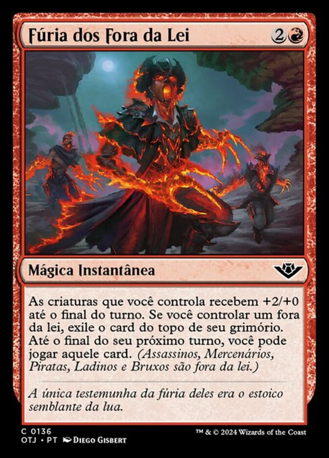 | Rules | Creatures you control get +2/+0 until end of turn. If you control an outlaw, exile the top card of your library. Until the end of your next turn, you may play that card. (Assassins, Mercenaries, Pirates, Rogues, and Warlocks are outlaws.) |