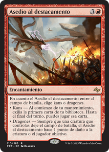• Dragons — Whenever a creature you control leaves the battlefield, Outpost Siege deals 1 damage to any target.