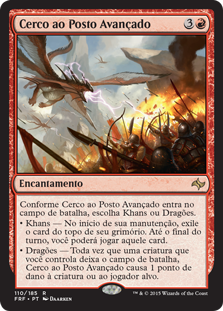 | Rules | As Outpost Siege enters the battlefield, choose Khans or Dragons. • Khans — At the beginning of your upkeep, exile the top card of your library. Until end of turn, you may play that card. • Dragons — Whenever a creature you control leaves the battlefield, Outpost Siege deals 1 damage to any target. |