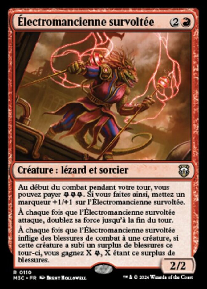 | Rules | At the beginning of combat on your turn, you may pay . If you do, put a +1/+1 counter on Overclocked Electromancer. Whenever Overclocked Electromancer attacks, double its power until end of turn. Whenever Overclocked Electromancer deals combat damage to a creature, if that creature was dealt excess damage this turn, you get X , where X is that excess damage. |