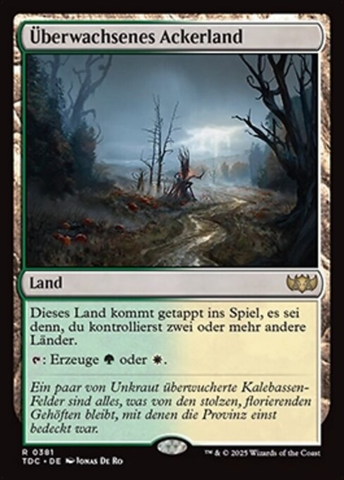| Rules | Overgrown Farmland enters the battlefield tapped unless you control two or more other lands. : Add or . |