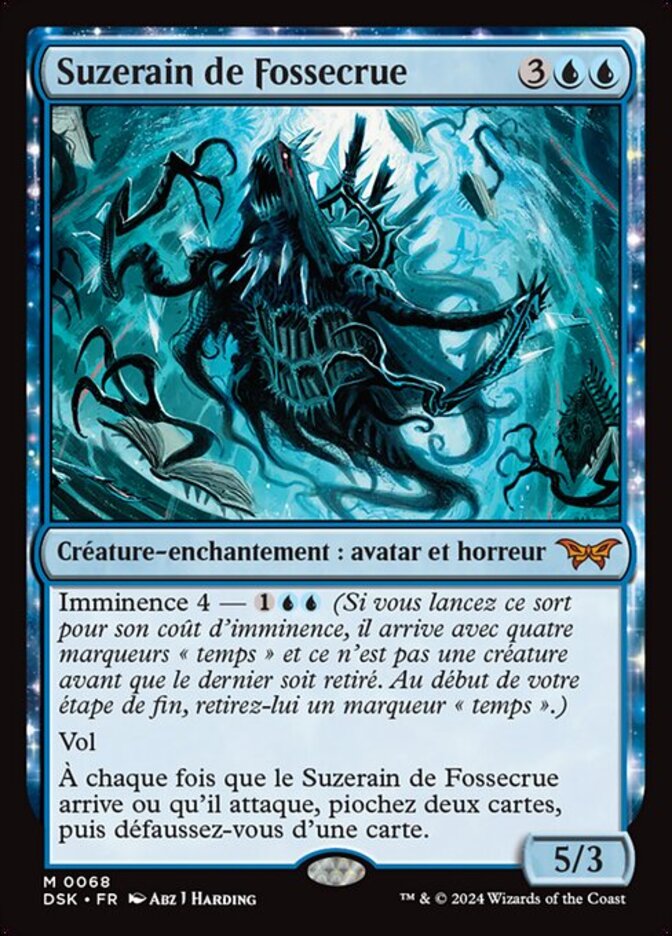 | Rules | Impending 4— (If you cast this spell for its impending cost, it enters with four time counters and isn't a creature until the last is removed. At the beginning of your end step, remove a time counter from it.) Flying Whenever Overlord of the Floodpits enters or attacks, draw two cards, then discard a card. |