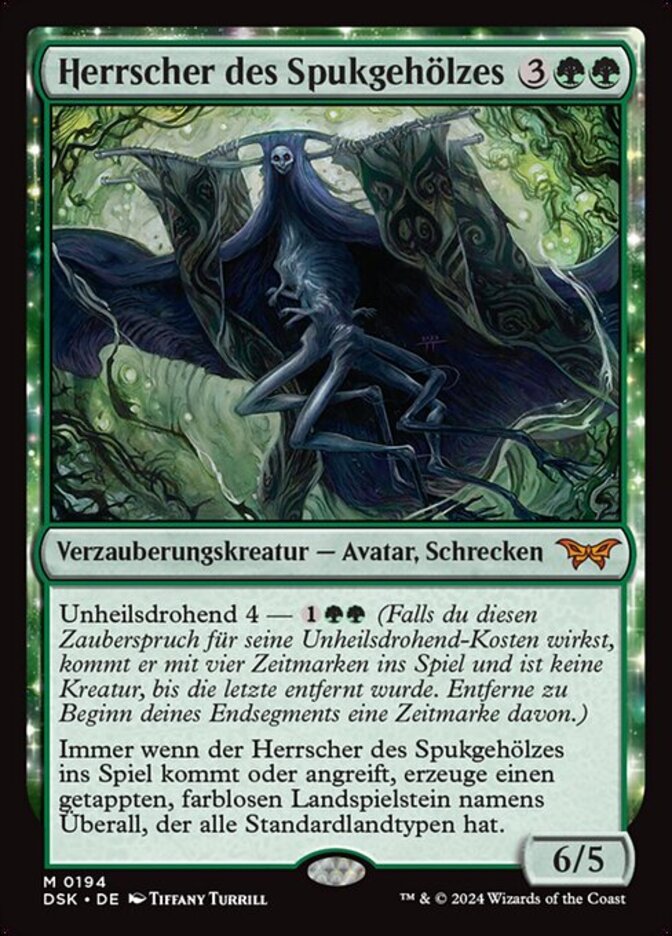 | Rules | Impending 4— (If you cast this spell for its impending cost, it enters with four time counters and isn't a creature until the last is removed. At the beginning of your end step, remove a time counter from it.) Whenever Overlord of the Hauntwoods enters or attacks, create a tapped colorless land token named Everywhere that is every basic land type. |