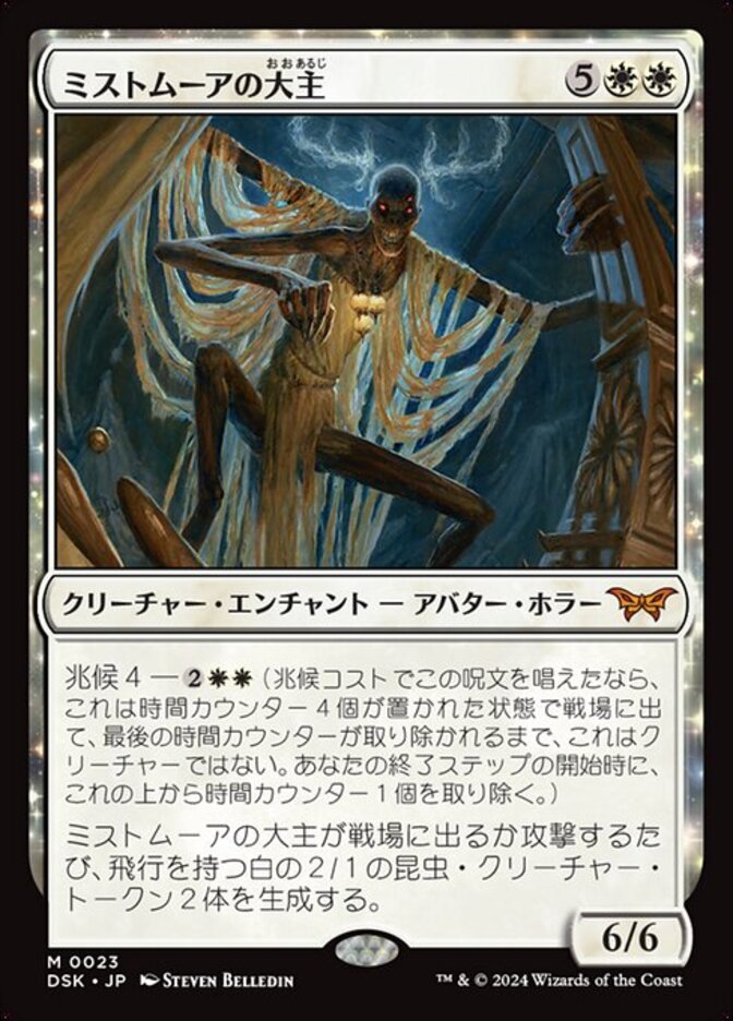 | Rules | Impending 4— (If you cast this spell for its impending cost, it enters with four time counters and isn't a creature until the last is removed. At the beginning of your end step, remove a time counter from it.) Whenever Overlord of the Mistmoors enters or attacks, create two 2/1 white Insect creature tokens with flying. |