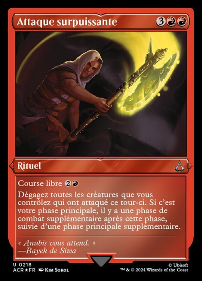 | Rules | Freerunning (You may cast this spell for its freerunning cost if you dealt combat damage to a player this turn with an Assassin or commander.) Untap all creatures you control that attacked this turn. If it's your main phase, there is an additional combat phase after this phase, followed by an additional main phase. |