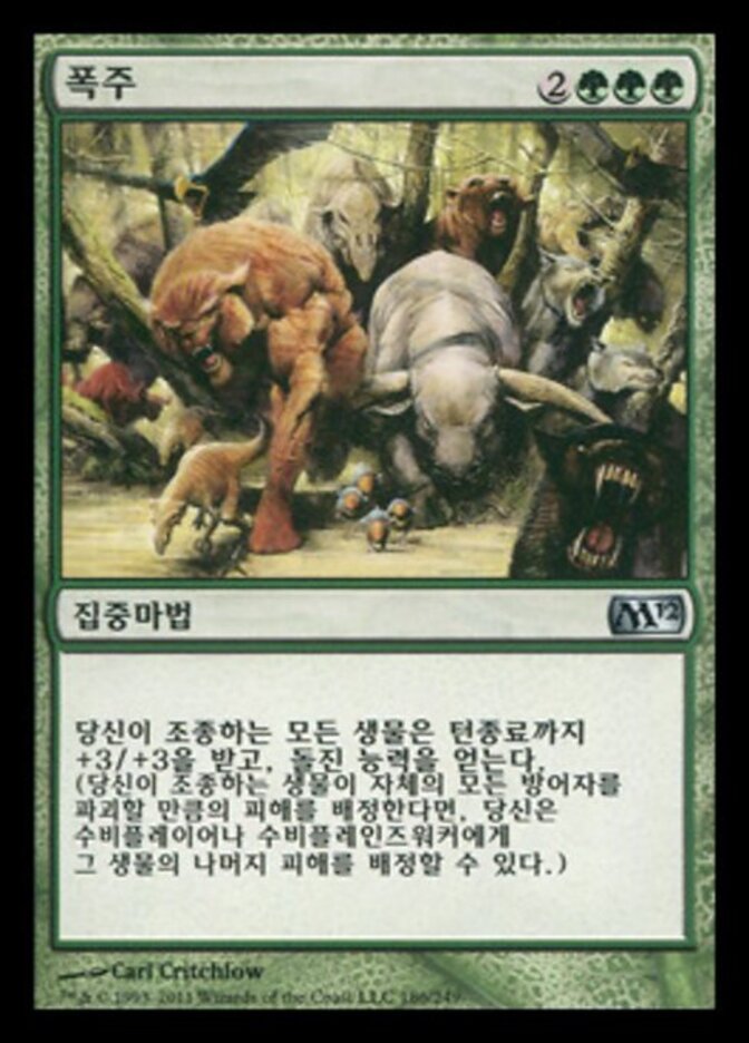 | Rules | Creatures you control get +3/+3 and gain trample until end of turn. |