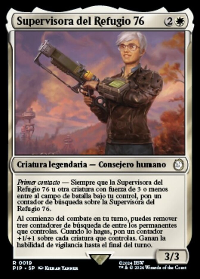 | Rules | First Contact — Whenever Overseer of Vault 76 or another creature with power 3 or less enters the battlefield under your control, put a quest counter on Overseer of Vault 76. At the beginning of combat on your turn, you may remove three quest counters from among permanents you control. When you do, put a +1/+1 counter on each creature you control and they gain vigilance until end of turn. |