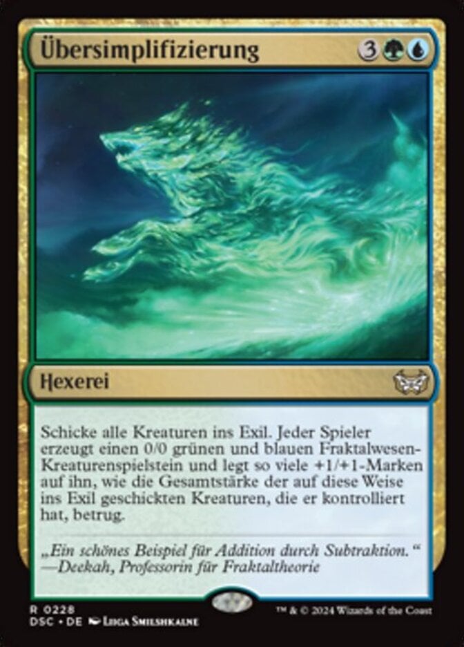| Rules | Exile all creatures. Each player creates a 0/0 green and blue Fractal creature token and puts a number of +1/+1 counters on it equal to the total power of creatures they controlled that were exiled this way. |