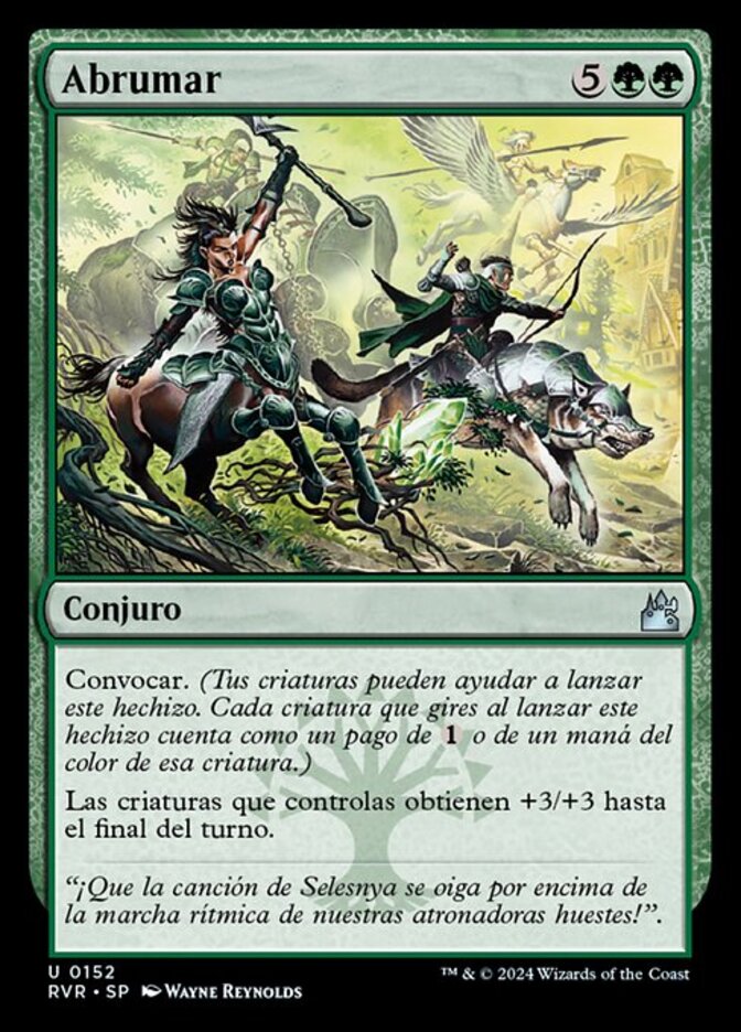 | Rules | Convoke (Your creatures can help cast this spell. Each creature you tap while casting this spell pays for or one mana of that creature's color.) Creatures you control get +3/+3 until end of turn. |