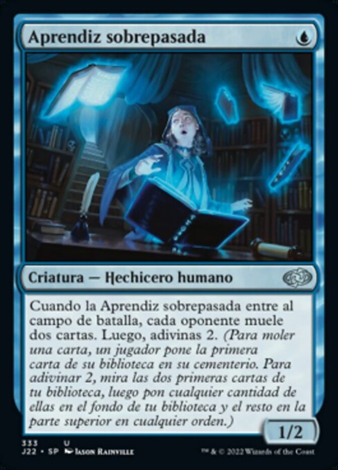 | Rules | When Overwhelmed Apprentice enters the battlefield, each opponent mills two cards. Then you scry 2. (Look at the top two cards of your library, then put any number of them on the bottom of your library and the rest on top in any order.) |