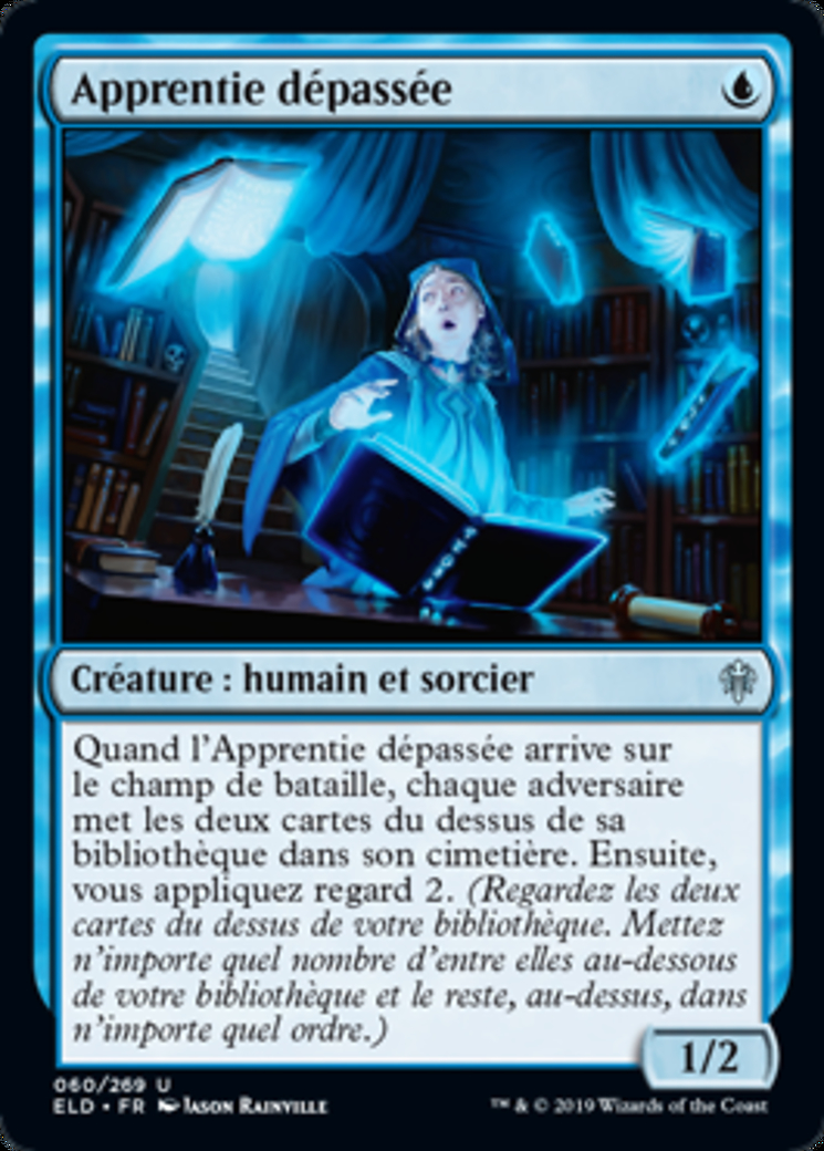 | Rules | When Overwhelmed Apprentice enters the battlefield, each opponent mills two cards. Then you scry 2. (Look at the top two cards of your library, then put any number of them on the bottom of your library and the rest on top in any order.) |