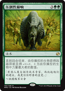 | Rules | Until end of turn, creatures you control gain trample and get +X/+X, where X is the greatest power among creatures you control. |
