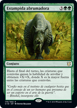 | Rules | Until end of turn, creatures you control gain trample and get +X/+X, where X is the greatest power among creatures you control. |