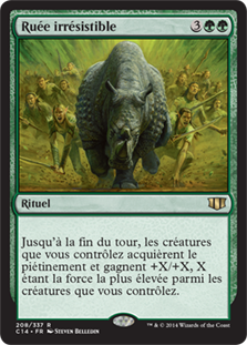 | Rules | Until end of turn, creatures you control gain trample and get +X/+X, where X is the greatest power among creatures you control. |