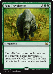 | Rules | Until end of turn, creatures you control gain trample and get +X/+X, where X is the greatest power among creatures you control. |