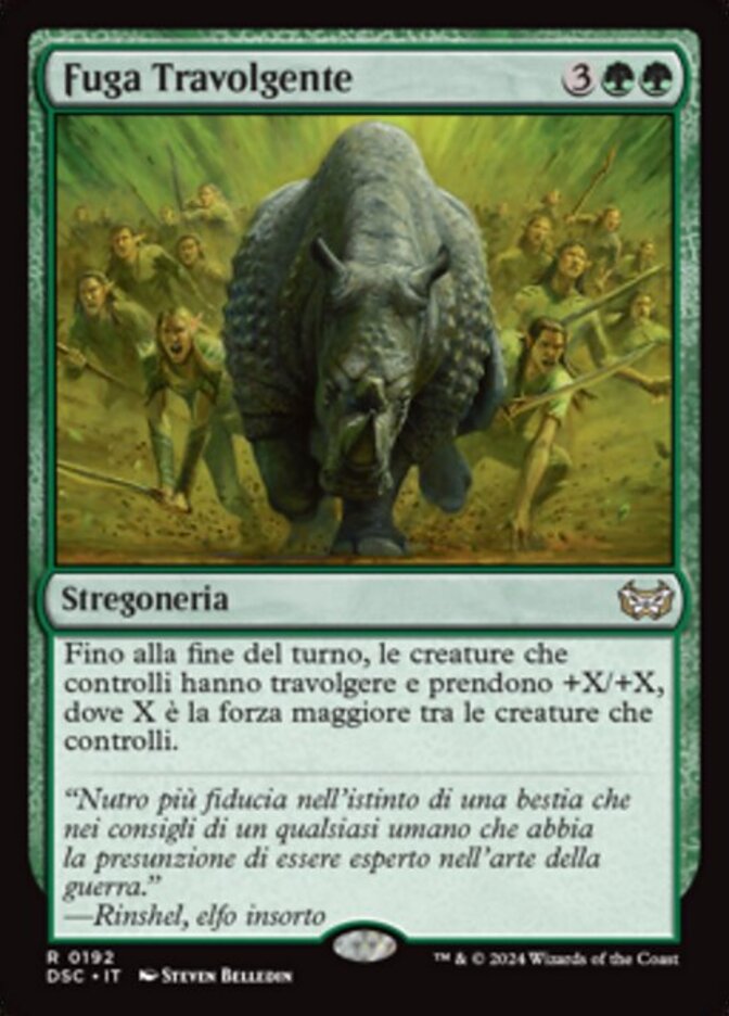 | Rules | Until end of turn, creatures you control gain trample and get +X/+X, where X is the greatest power among creatures you control. |