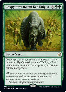 | Rules | Until end of turn, creatures you control gain trample and get +X/+X, where X is the greatest power among creatures you control. |
