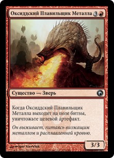 | Rules | When Oxidda Scrapmelter enters the battlefield, destroy target artifact. |