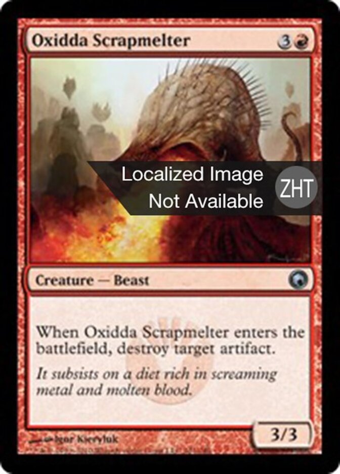 | Rules | When Oxidda Scrapmelter enters the battlefield, destroy target artifact. |