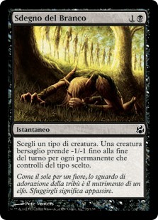 | Rules | Choose a creature type. Target creature gets -1/-1 until end of turn for each permanent of the chosen type you control. |