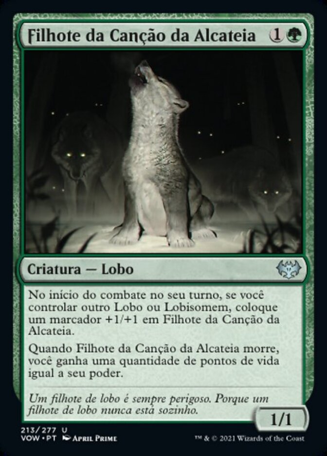 | Rules | At the beginning of combat on your turn, if you control another Wolf or Werewolf, put a +1/+1 counter on Packsong Pup. When Packsong Pup dies, you gain life equal to its power. |