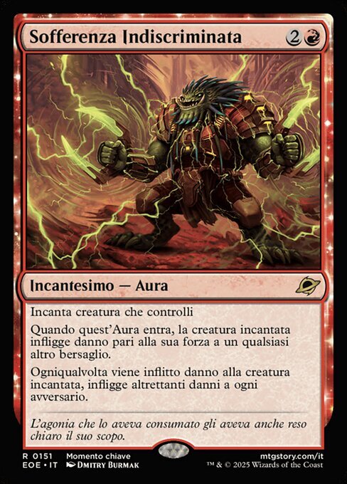 | Rules | Enchant creature you control When this Aura enters, enchanted creature deals damage equal to its power to any other target. Whenever enchanted creature is dealt damage, it deals that much damage to each opponent. |