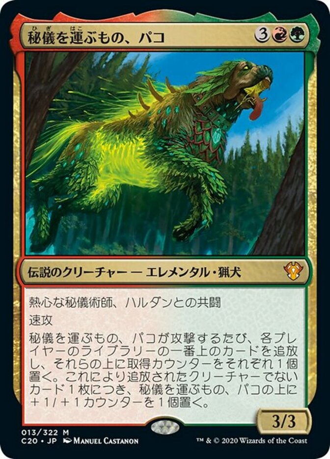 | Rules | Partner with Haldan, Avid Arcanist Haste Whenever Pako, Arcane Retriever attacks, exile the top card of each player's library and put a fetch counter on each of them. Put a +1/+1 counter on Pako for each noncreature card exiled this way. |
