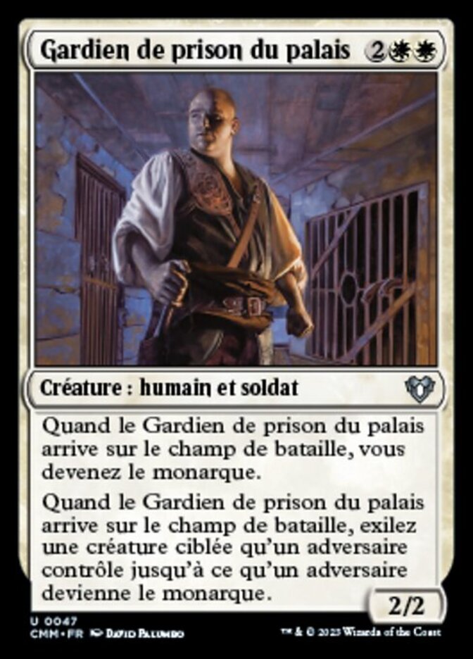 | Rules | When Palace Jailer enters the battlefield, you become the monarch. When Palace Jailer enters the battlefield, exile target creature an opponent controls until an opponent becomes the monarch. |