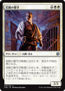 | Rules | When Palace Jailer enters the battlefield, you become the monarch. When Palace Jailer enters the battlefield, exile target creature an opponent controls until an opponent becomes the monarch. |