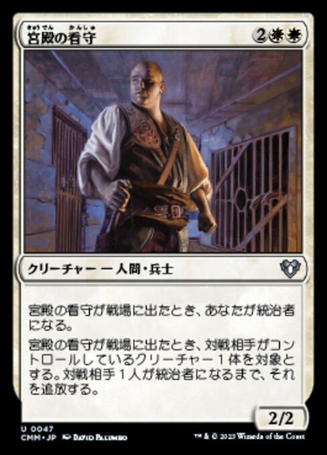 | Rules | When Palace Jailer enters the battlefield, you become the monarch. When Palace Jailer enters the battlefield, exile target creature an opponent controls until an opponent becomes the monarch. |