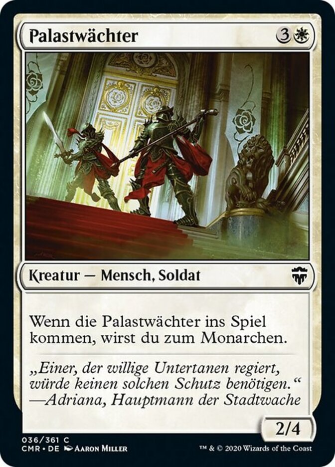 | Rules | When Palace Sentinels enters the battlefield, you become the monarch. |