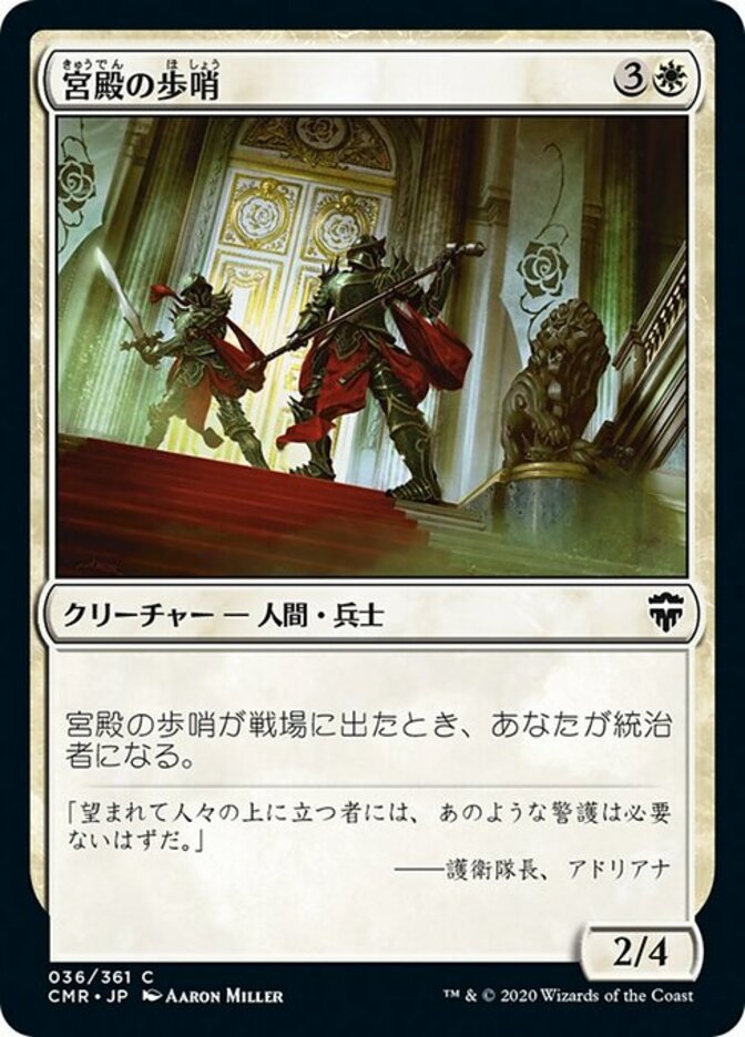 | Rules | When Palace Sentinels enters the battlefield, you become the monarch. |