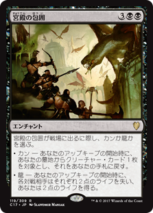 | Rules | As Palace Siege enters the battlefield, choose Khans or Dragons. • Khans — At the beginning of your upkeep, return target creature card from your graveyard to your hand. • Dragons — At the beginning of your upkeep, each opponent loses 2 life and you gain 2 life. |