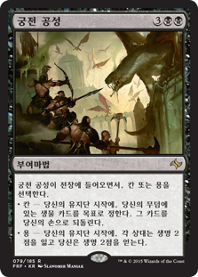 | Rules | As Palace Siege enters the battlefield, choose Khans or Dragons. • Khans — At the beginning of your upkeep, return target creature card from your graveyard to your hand. • Dragons — At the beginning of your upkeep, each opponent loses 2 life and you gain 2 life. |