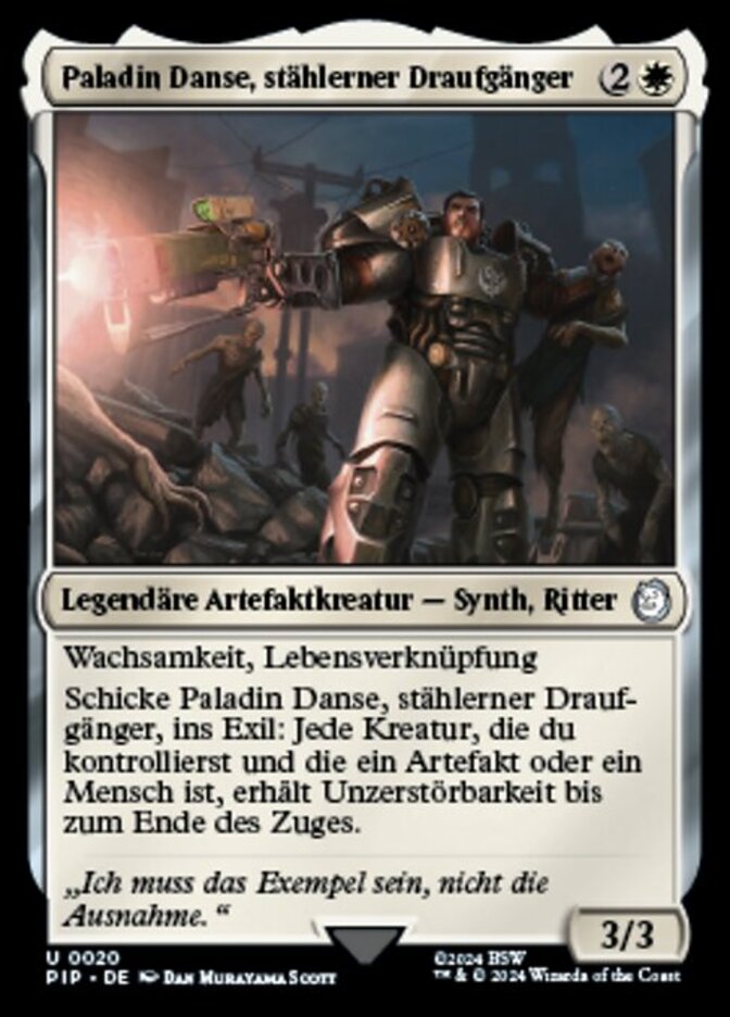 | Rules | Vigilance, lifelink Exile Paladin Danse, Steel Maverick: Each creature you control that's an artifact or Human gains indestructible until end of turn. |