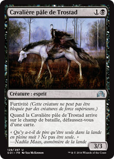 | Rules | Skulk (This creature can't be blocked by creatures with greater power.) When Pale Rider of Trostad enters the battlefield, discard a card. |