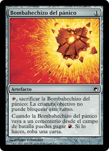 | Rules | , Sacrifice Panic Spellbomb: Target creature can't block this turn. When Panic Spellbomb is put into a graveyard from the battlefield, you may pay . If you do, draw a card. |