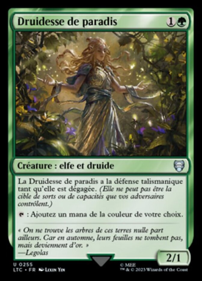 | Rules | Paradise Druid has hexproof as long as it's untapped. (It can't be the target of spells or abilities your opponents control.) : Add one mana of any color. |