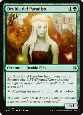 | Rules | Paradise Druid has hexproof as long as it's untapped. (It can't be the target of spells or abilities your opponents control.) : Add one mana of any color. |