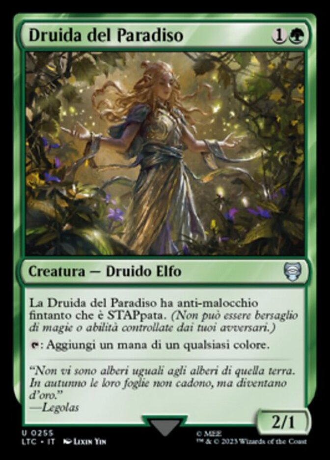 | Rules | Paradise Druid has hexproof as long as it's untapped. (It can't be the target of spells or abilities your opponents control.) : Add one mana of any color. |