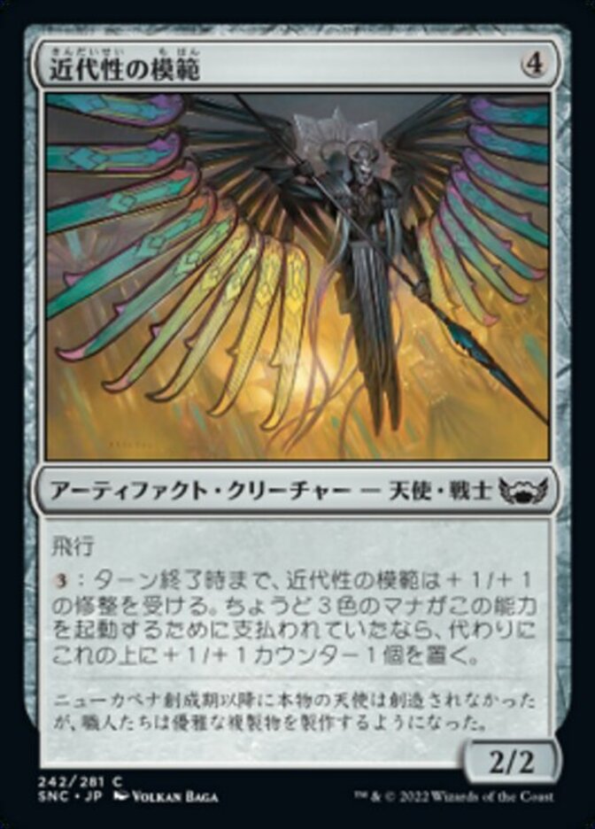 | Rules | Flying : Paragon of Modernity gets +1/+1 until end of turn. If exactly three colors of mana were spent to activate this ability, put a +1/+1 counter on it instead. |