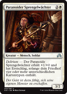 | Rules | Delirium — Paranoid Parish-Blade gets +1/+0 and has first strike as long as there are four or more card types among cards in your graveyard. |